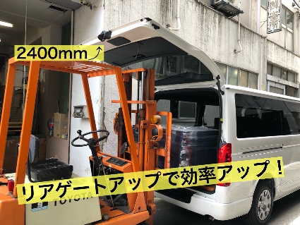 標準ボディ、バンのリアゲート の開口高さは約1900mm。この高さですとフォークリフトのマストが干渉してしまい積み下ろしに支障が出てしまいます。いわゆる2024年問題が危惧されている今、圧倒的時短に貢献する価値ある改造はいかがでしょうか。改造の様子を動画で紹介しております、良かったらご覧下さい。